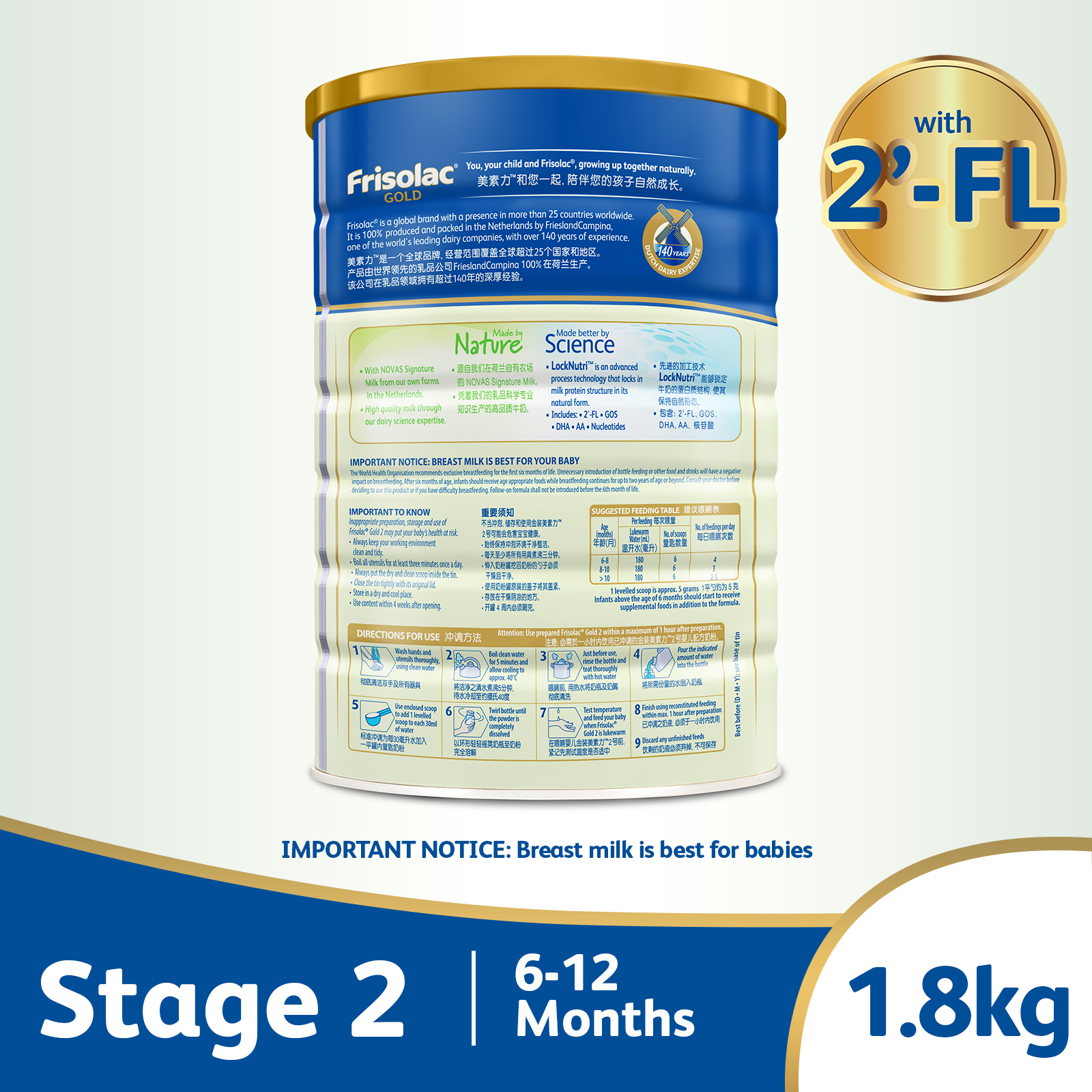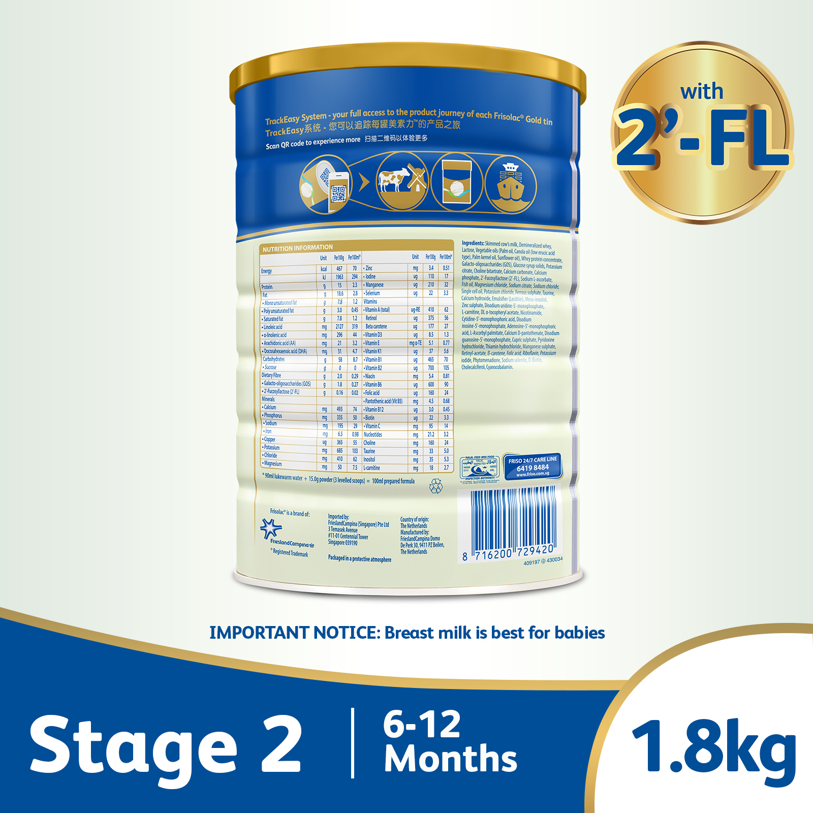 Frisolac Gold Stage 2'-FL 2 Follow-On 1.8kg - Infant Newborn Baby Milk Formula for 6-12 months
