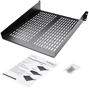 StarTech.com 2U サーバーラック棚板/19インチ装置ラック&キャビネット用放熱スリット付きカンチレバートレイ/高耐久性スチール/耐荷重23kg/奥行56cm ブラック CABSHELF22V