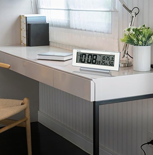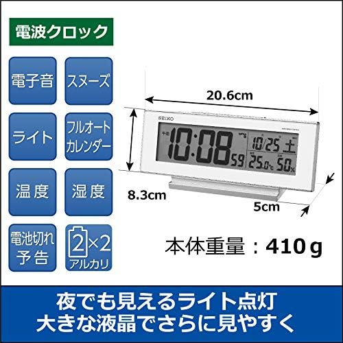 セイコー クロック 目覚まし時計 常時点灯 電波 デジタル カレンダー 温度 湿度 表示 夜でも見える 白 SQ762W SEIKO