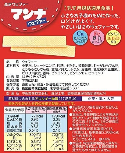 森永製菓 マンナウェファー 14枚(2枚×7袋)×6箱 栄養機能食品(カルシウム・鉄)