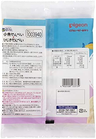 ひじきせんべい・・・うるち米(国産)、コーンスターチ、砂糖、食塩、ひじき粉末、わかめ粉末、炭酸カルシウム、ピロリン酸第二鉄 商品サイズ(高さx奥行x幅):250mmx40mmx170mm 原産国:日本 ブラント名: ピジョン