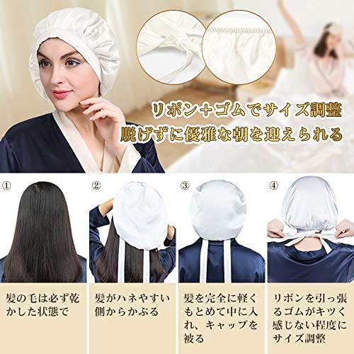 【天然シルク100%素材】6Aランクの天然シルク・19匁シルクで作られたヘアキャップです。真珠のような美しい光沢や滑らかな肌触りがあって、見るだけで気持ちいい!肌触りが優しくて保湿通気性も優れています。夏は涼しく、冬は暖かく、季節をとわずホームキャップです。 【髪が痛む原因とは?】人は1日に寝返りを20~30回打つと言われてます。寝返りで髪同士が擦れて痛むことが、切れ毛・枝毛の原因となります。それらを防ぐには、就寝中の髪の暴れを抑えることが大切なんです。 【シルクを選ぶ理由】シルクは人間の皮膚に良い多くの機能を持ち合わせています。頭皮・髪の乾燥を抑える効果があります。シルクナイトキャップは就寝時に髪の毛が絡まり、切れ毛を防ぐのに効果があります。寝ている間にかぶるだけで簡単に髪質改善・ヘアケア・頭皮ケアができるので、お手入れの時間短縮にもなります。 【独特なデザイン】1/4周ゴムを入れて、リボン付きこのナイトキャップは髪を傷つかなくて柔らかく、跡を残さないだけでなく、サイズの調整が可能です。ミディアム~ロングヘアーまで対応可能です。着脱も便利だし、様々な頭囲に間に合えます。 【ギフトにも】LilySilkの上質なシルク商品 は、奥さんやお母さんなど、女性へのお誕生日・クリスマスプレゼント・母の日の贈り物にもおすすめです。相手に感謝の気持ちを込めていつもありがとう!ぜひこの機会にlilysilkでお買い物をお楽しみください。 - 37,185位ファッション ( ) - 321位 - 2,599位