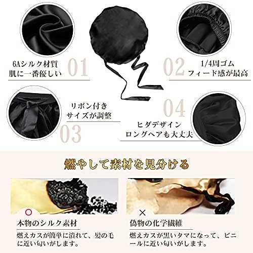 [LilySilk] 天然シルク100% ナイトキャップ 枝毛防止 保湿美髪 ロングヘア用 お休みキャップ 就寝用 産後用 (1/4周ゴム)
