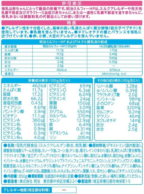 明治ミルフィーHP 850g