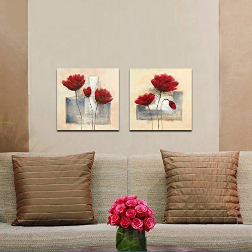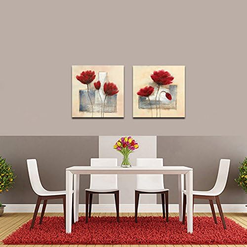 Wieco Art - 紅花 モダン 高精細ジークレープリント画 寝室装飾用絵画 フレーム無し絵画 リビングの装飾用絵画 壁掛け絵画 壁用絵画 玄関装飾用絵画 モダンでシンプルな装飾用絵画 工芸画 インテリア装飾壁用絵画 (木枠付きの完成品)- FRC2