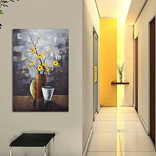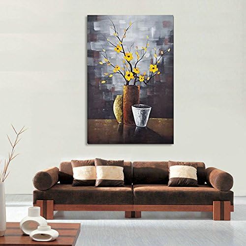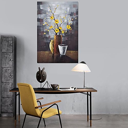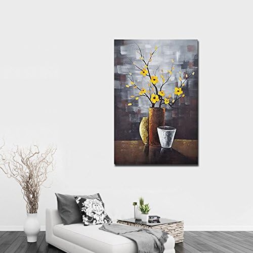 Wieco Art – 黄色の花 木 完全手描き油絵 装飾用絵画 フレーム無し絵画 リビングの装飾用絵画 壁掛け絵画 壁用絵画 玄関装飾用絵画 モダンでシンプルな装飾用絵画 工芸画 インテリア装飾壁用絵画 (木枠付きの完成品)- AB1117