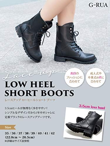 [ジルア] レースアップ ショート 卒業式 ブーツ 22.0cm ~ 26.5cm ローヒール 靴 紐 ブラック レディース 成人式 卒業 袴 #062