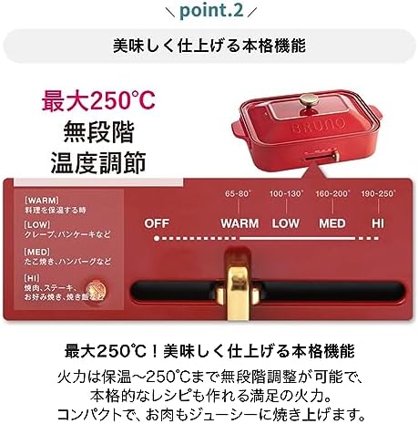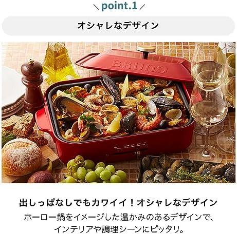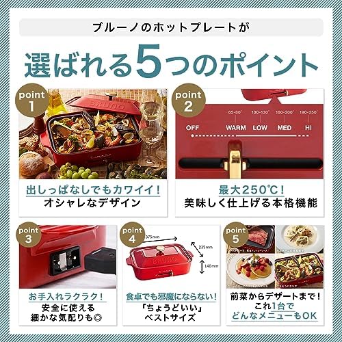 BRUNO ブルーノ コンパクトホットプレート 本体 プレート2種(たこ焼き 平面) ネイビー Navy 紺 おしゃれ かわいい これ1台 蓋 ふた付き 1200w 温度調節 洗いやすい 1人 2人 3人用 小型 小さいサイズ 少人数用 ひとり暮らしにも プレゼント ギフト 贈り物 BOE021-NV