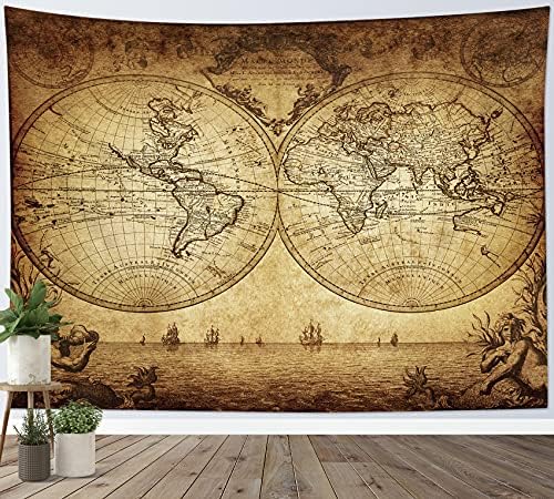 LB ヴィンテージ風タペストリー 世界地図 ワールドマップ 壁掛け 壁飾り おしゃれ インテリア ウォールアート モダン 装飾アート 多機能 お店 雑貨 新居祝い 個性プレゼント 布製200x150cm
