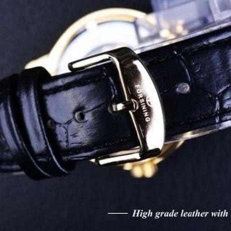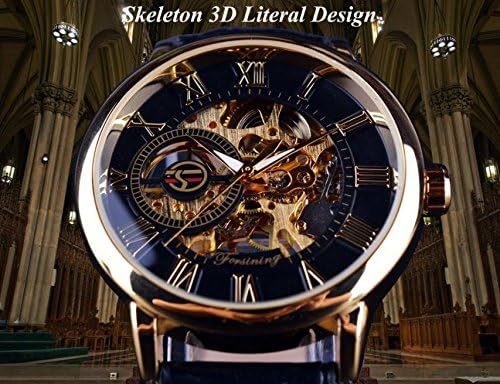 un bel tocco (ウンベルトッコ)アンティーク風 スケルトン 機械式 腕時計 メンズ 手巻き クラシカル (ブラック/ゴールド)