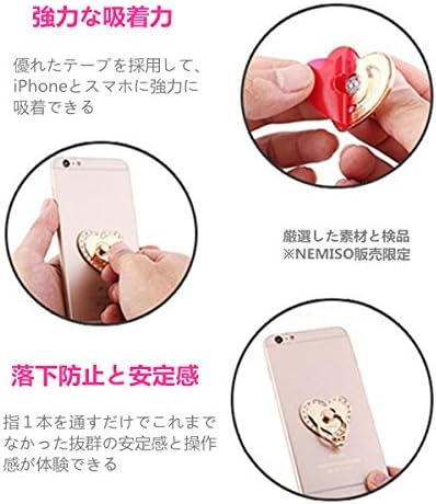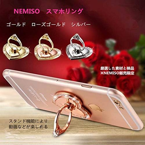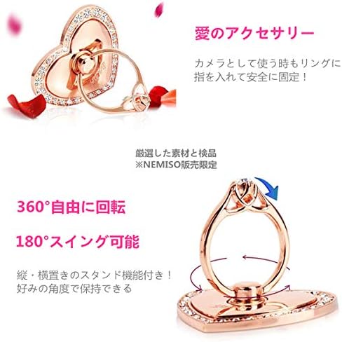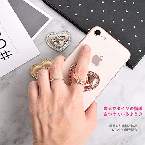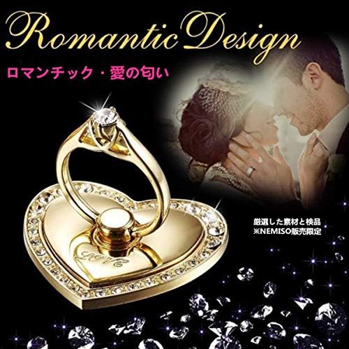 NEMISO スマホリング バンカーリング ハート ラブ型 キラキラ ダイヤモンド付き ホールドリング スマホスタンド スマートフォン タブレット ホルダー 薄型 指輪 リング 携帯アクセサリースタンド機能 落下防止 車載ホルダー 360回転 iPhone/Android各種他対応 (ゴールド)