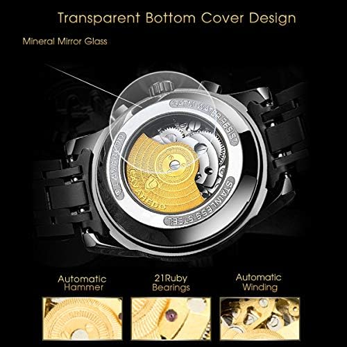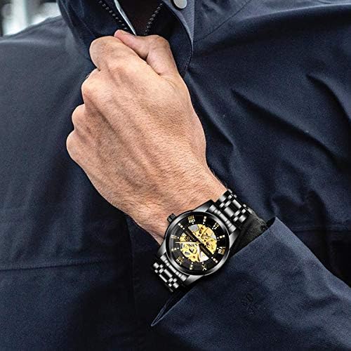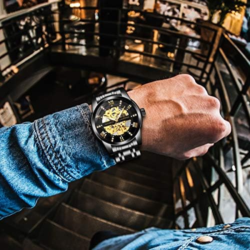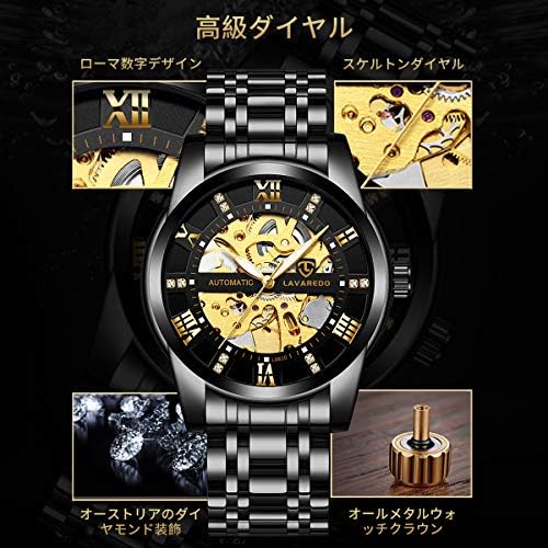 腕時計, メンズ腕時計 機械式 スケルトン ブラックス テンレススチール 高級 防水 自動 自動巻き ルミナス ダイヤモンド ローマ数字 ダイヤル 時計