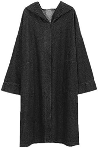 [ジュージェン] デニムコート レディース ゆったり トレンチコート カジュアル 薄手 ロングコート レディース 春コートス プリントコート 大きいサイズ(Freesize黒)