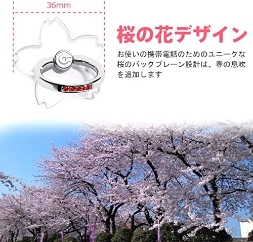 桜 透明 スマホリング サクラ ホールドリング スタンド スタンド機能 車載ホルダー iPhone/Android各種他対応 薄型 落下防止リング 360回転 (ローズゴールド)