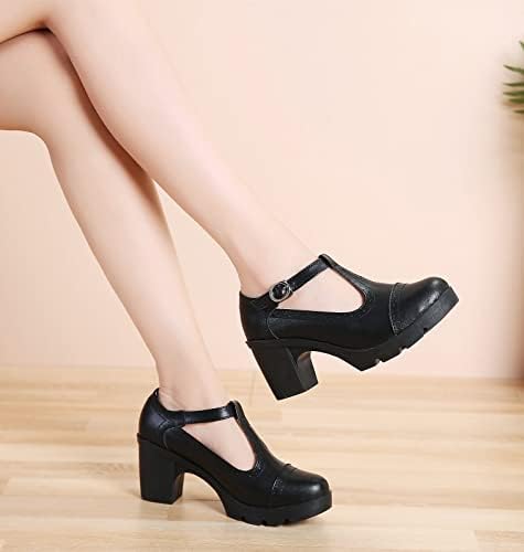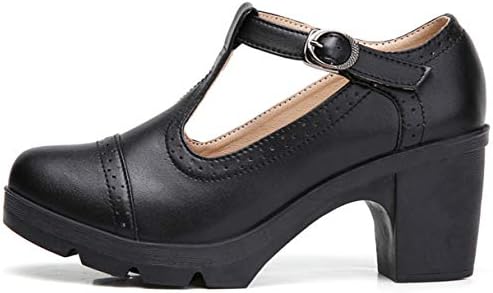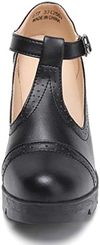 DADAWEN レディース レザー クラシック Tストラップ プラットフォーム チャンキー ミッドヒール メリージェーン スクエアトゥ オックスフォード ドレス パンプス シューズ