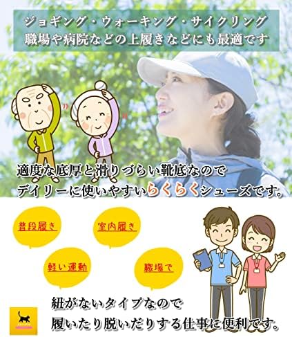 伸縮性のある素材を採用し、程よいフィット感があり、通気性もとても良く清潔感のあるさわやかな履き心地で、長時間歩いても蒸れにくいです。 優れた屈曲性により、クッション性が抜群で、踏み込む際の衝撃を吸収し、とても歩きやすくて疲れにくいです。 つま先上がりのソールデザインは、歩行中のつまづきなどを軽減し、程よい硬さの靴底には、滑りづらくなるように凹凸を付けてあります。柔軟性が高いので、歩いたり走ったりしやすくなっております。 脱ぎ履きもラクチンでとても便利で、普段履きや室内履きとしてはもちろん、お散歩や運転、ナースなどの長時間の立ち仕事、通勤、トラベル携帯などにもおすすめです。 フィット感を重視しつつ、おしゃれなデザイン性で普段のカジュアルスタイルにも合わせやすい、オールラウンドに履ける安全で安心感のあるシューズです。 - 34,849位ファッション ( ) - 169位