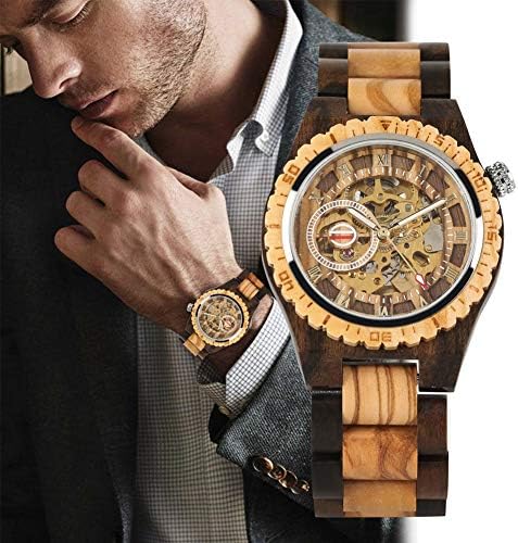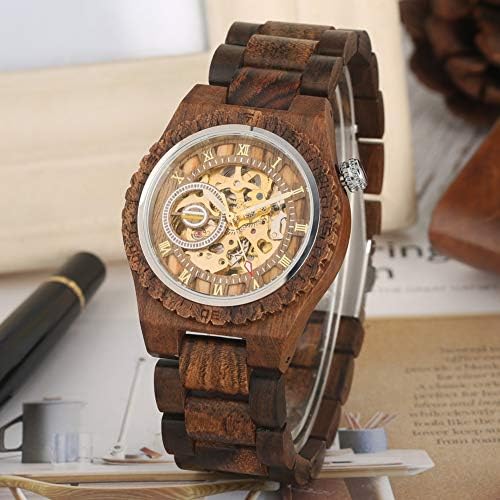 木製時計男性、古典的な中空自動巻き機械式木製テーブルメンズデジタルダイヤル木製時計,ブラウン