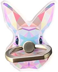 「e.coco」お洒落 幾何学動物柄 トラ オオカミ ライオン ウサギ ヒョウ 兎 スマホリング アイリング 携帯リング スタンド機能 バンカーリング 360°回転 落下防止 指輪型 ホールドリング iPhone/Android/ipad各機種対応 (ウサギ)
