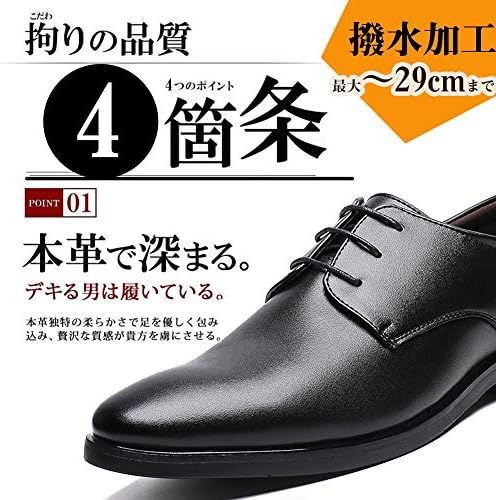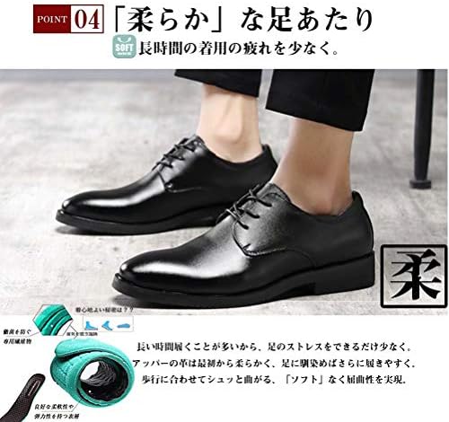 ◎素 材:表面:二層目牛革 裏面:レザー インソール:厚めインソール ソール:高性能ゴム ヒール高:約3.2cm(中敷込) 【ゆったり幅広めのプレーントゥ】窮屈さを感じない幅広3E。日本人に多いとされる幅広タイプに合わせた3E設計、脚長く見せる深みのデザイン。ゆったりとストレスを感じず、シルエットだけでも魅せる美しさがそこにある。 【★年齢を問わず愛されるシンプルなデザイン】脚長く見せる深みのデザイン、そしてシンプルなデザインだからこそ、その分様々なスタイルに合わせることができます。ビジネスはもちろん、カジュアルなスタイルにコーディして頂くことも。年齢を問わず愛されるデザインです。 【滑りにくくスニーカーのように走れるアウトソール】滑りにくく、柔らかすぎず、超高い反発力を実現する。防滑効果と、デザイン性を両立したソールになっており、雨の日でもすごく安心でき、走れるビジネスシューズ。 【サイズについての説明】+0.5cm大めに作られますので、足が細めの方は何卒-0.5~-0cmでお選びください。(※厚めの靴下を履いた場合では、何卒通常のサイズでお願いします)甲高・幅広人間は+0cm~+0.5cmでお願いします。サイズについてもし何かご不明な点があれば、ぜひお問い合わせください。 - 10,057位ファッション ( ) - 47位