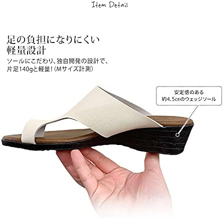 [原産国]:MADE IN JAPAN(日本) [素材]:アッパー/合成皮革、アウトソール/合成底 [サイズ]:S(22.0-22.5cm)/M(23.0-23.5cm)/L(24.0-24.5cm)/LL(24.5-25.0cm) [ソール高さ]:約4.5cm [重量]:Mサイズ片足で約140g [配送重量]:約440g ソフトな素材で足に優しい親指トングサンダル。 屈曲性抜群のソールに柔らかなアッパーで足に負担のかからないアイテム。 夏のデイリーにオススメ☆ 1.【軽くて疲れにくい】 ソールにこだわり、独自開発の設計で、片足140gと軽量!(Mサイズ計測) 長時間履いても疲れにくく、約4.5cmのウェッジソールで安定感もあり脚長効果も期待できます。 ふっくら厚みのあるふわふわのクッションインソールで歩行時の足の負担を軽減します。 2.【柔らかく歩きやすい】 肌にやさしく、しなやかに屈曲性があり、足へのストレスを軽減! 3.【脱ぎ履きらくちん】 サッと履けてらくちん! 親指リングデザインで、指ズレも防止します。 - 16,395位ファッション ( ) - 105位