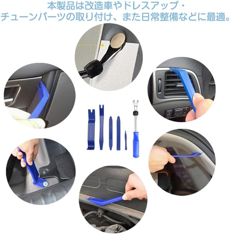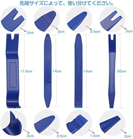🛠️最新配線通し改良版内張りはがしセット:内装剥がし用POM製リムーバーをはじめ、クリップクランプツール、配線ガイド、おまけに検電テスターも含めております。自動車メンテナンス用ツールをレギュラーの8点も揃い、自動車整備に大活躍な一品だと思います。 🛠️キズをつけにくいPOM製のソフトタイプ:インパネ等の内張り素材は集中的な点の力に対して弱いので、マイナスドライバーなど鋭い金属製のもので力を加えると凹みやキズの原因になります。それに対して、プラスチック樹脂製である内張り剥がしはキズをつけにくく、しなることで瞬間的な力の入れ過ぎを防ぎ、パネルの破損やピン割れから守ります。 🛠️持ち運び便利:綺麗な収納できる専用ケース付属しております。持ち運びがとても便利です。どこでもいつでも利用できます。 🛠️幅広い用途:内張りはがしは自分で愛車のデッドニングやメンテナンスを行うDIY整備士向けの専門工具としては、インパネ・スピーカー・カーオーディオ・led・ルームランプ、ドア内張りの改装・修理やドレスアップ時の内装はがしに対応できる、必要十分な8点セットです。自動車の内装はがし以外でもエアコンや照明器具、ルームランプカバー等の樹脂部品のパネルはがしにもお使いいただけます。 🛠️※レギュラーの内装剥がしツール以外、配線通しも入っています。おまけに検電テスターが付属しております。ご愛車のいじる作業を更に容易します。※商品に不具合があった場合は弊社に連絡くださいませ。商品交換が可能でございます。 🛠️※収納袋はファフナータイプやジッパータイプの二種類があるため、発送はランダムとなります。