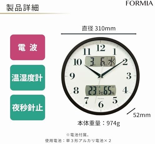 Formia(フォルミア) 電波 壁掛け時計 静音 温度 湿度 温湿度計 日付 曜日 夜間秒針停止 アナログ 保土ヶ谷電子販売 ブラウン HWC-001