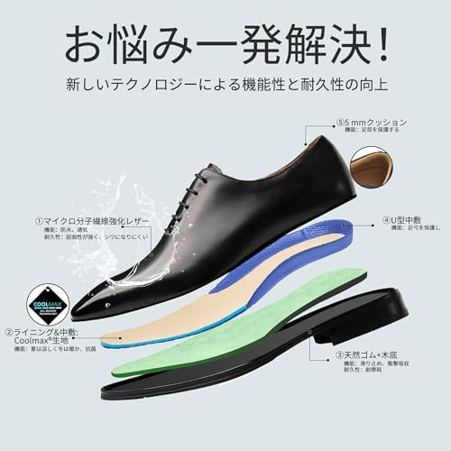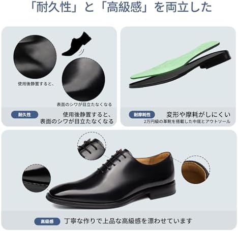 [フォクスセンス] ビジネスシューズ 革靴 メンズ 本革 ドレスシューズ 高級紳士靴 内羽根 プレーントゥ 高級レザー フォーマル 防水