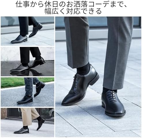 ★アマゾンの厳しい品質認証に合格し、「Amazon’s Choice」が得られた上、1万円以下で買えるコスパ最高のビジネスシューズ★高コスパ、高評価、当店売れ筋No1!販売累計20万足突破の大人気ビジネスシューズ! アッパーにイタリアン製の牛革を採用し、シンプルでありながら存在感を感じさせる大人顔のショートブーツ。オン・オフ選ばず履けるベーシックなデザインで、-履き口部にゴムをつけて、着脱しやすくなるサイドゴアブーツ。 履き心地は柔らかく、最初に足を入れた日からすんなりと履けるのが魅力。汎用性が高いこのモデルはスーツに合わせても◎ 通勤、通学、ビジネス、デート、就活、就職、冠婚葬祭などの場合まで、どんなスーツとの組み合わせは簡単なビジネスシューズです。 ビジネスシーンから・チノパンやデニムなどのカジュアルシーンまで幅広く活躍!足元を品良くコーディネート。丁度良いと感じるサイズには個人差があり、基準にする靴によって異なります。あくまでも目安としてお考えください。装飾のないプレーントゥを採用したすっきりとしたシルエットで足元を品良くコーディネート。 - 5,478位ファッション ( ) - 29位