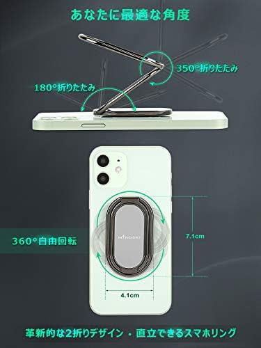 スマホリング Mindsky業界初製品、縦置きバンカーリング、折りたたみスマホリング、全角度可調180°360°回転、落下防止の携帯キラキラすまほりんぐ、 固定磁石強力粘着リング、片手操作可アイホン指リング、 マグネット車載ホルダー付属、3M VHB粘着パッド+透明フィルム付属(いつでも交換可能) iphone/ipad/Android/switch/kindle/iFace ケース各種他対応