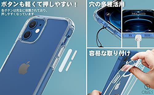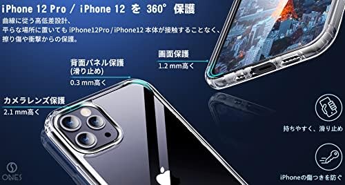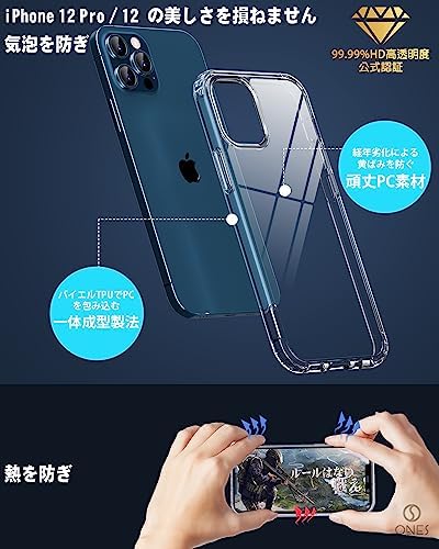 ONES HD全透明 iPhone 12Pro/12 ハード ケース 米軍MIL規格 超耐衝撃 エアバッグ 〔 高靭性強化PCガードボード ✚ 高弾性衝撃吸収TPUバンパー 〕『 画面 · レンズ保護、Qi充電 』 滑り止め 超軽量 持ちやすい 美しい 黄変防止 クリア カバー