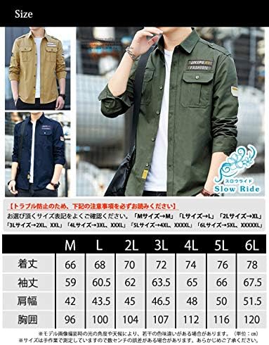[スロウライド] ミリタリー シャツジャケット カジュアル 春 秋 冬 男 メンズ (ネイビー、グリーン、カーキ) L ~ 4XL