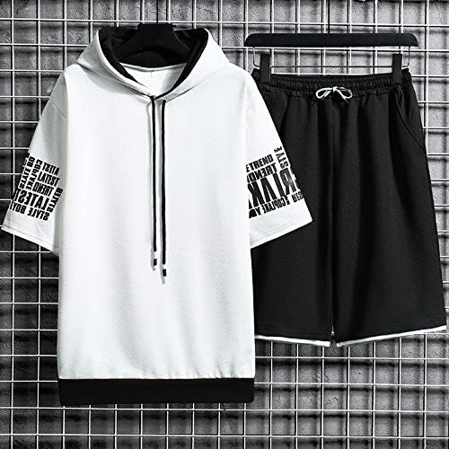 D.IIZOO Men's Short Sleeve Hoodie Set with Hood, Short Sleeve, Half Pants, 2-Piece Set, Jersey, Top and Bottom Set, Active Wear, Spring and Summer Clothing, Stylish, Korean Fashionable