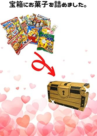駄菓子屋の宝箱をプレゼントする。そろそろ孫の誕生日!たくさんの駄菓子を贈る! サプライズプレゼントの場合、駄菓子屋の宝箱はインパクトがありますので見つからないように子どもたちの視線が届かないところにしまってください。(中身を確認後速やかに隠してください。) 特別な日に、特別な贈り物を。お菓子詰め合わせで、大切な人に笑顔をお届けしましょう! 50種類の駄菓子を使用した、たくさん詰まった贅沢な駄菓子セットです。さまざまな味わいやテイストが楽しめます。 画像はイメージです。時期により商品レパートリーが変更していきますので予めご了承ください。イメージ画像は使いまわしさせていただいております。何卒よろしくお願い致します。標準55入。内容量は重量で管理しております。1個の重量により、標準個数が異なる場合がございます。
