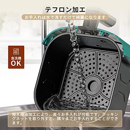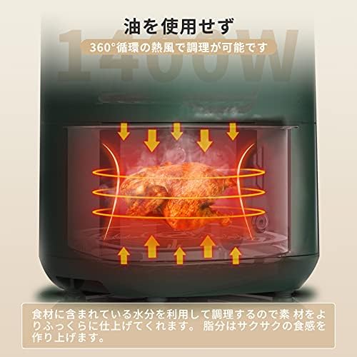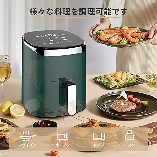 Wallfire ノンフライヤー 4.5L大容量 電気フライヤー 揚げ物ノンオイル 惣菜 1-5人 タッチパネル エアーフライヤー LEDディスプレイ タッチパネル 温度調整 タイマー 日本語説明書 日本語レシピ付き PSE認証済 濃緑色 引越し、結婚式、お誕生日、記念日 プレゼント