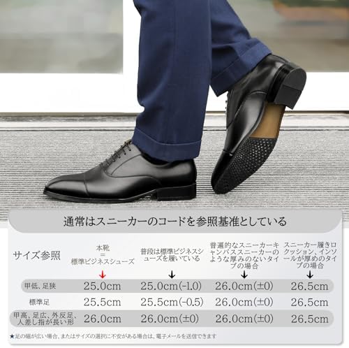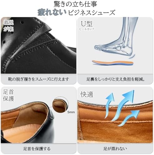 「スニーカー感覚」で履けるハイブリッド・ビジネスシューズ。外回りでも疲れない!通気性・クッション性に優れ、抗菌効果もある。★コストを徹底的に削減★ネットで流通する「安かろう悪かろう」な製品ではなく 私たちが本当に感動したプロダクトだけをできるだけ コストを抑えて皆さまにお届けしております。★高コスパ、高評価、当店売れ筋No1!販売累計20万足突破の大人気ビジネスシューズ! ★アマゾンで年間累計販売数10万足(自社調べ)のおすすめビジネスシュ一ズ★ 普段履きのビジネスシューズより0.5㎝小さめにお選びください。スニーカーサイズ27㎝の場合は26㎝をお選びください。(個人差により異なる場合がございます。ご参考お願い致します。) ストレートチップのデザインなので、フォマール度は最も高く、通勤用だけではなく、冠婚葬祭までドレスシューズとしても相性がいいメンズシューズです。スタイリッシュなシルエットの革靴から、履き心地やクッション性を重視した機能性の高いものまで、スタイルやビジネスシーンに合わせて選べます。 ★商品の色に付きましては、モニター環境により実物と画像の色合いが若干異なって見える場合がございます。ご了承の上ご注文下さい。 - 9,010位ファッション ( ) - 46位