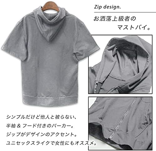 [フローライズ] サマー パーカー メンズ 半袖 薄手 スポーツ アウトドア 部屋着 ジップ付き 無地 夏