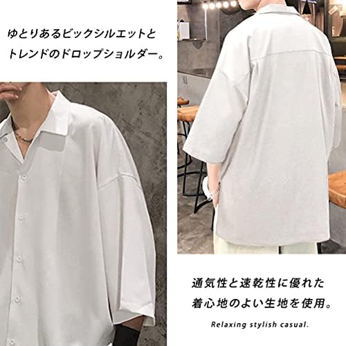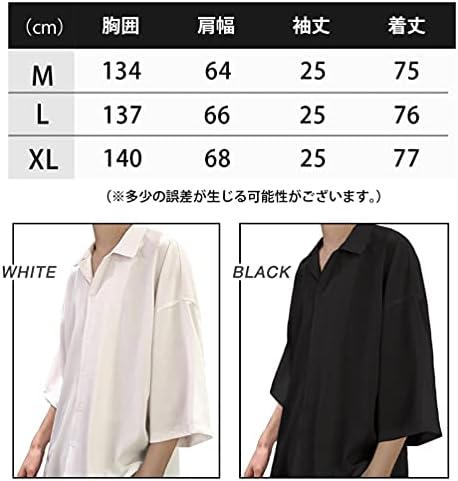 Introducing an open collar shirt with a gentle open neck that creates a summer and masculine look The thin and lightweight material has excellent breathability and quick drying properties, making it a versatile item that can be worn alone or as an inner layer This short sleeve shirt has a roomy silhouette and is perfect for a relaxed yet modern look The simple yet carefully designed design goes well with any outfit from wide pants to an A-line silhouette that matches with skinnies Reference Size (inches): Chest / Shoulder Width / Sleeve Length / Length (M: 53.0 / 25.0 / 25.0 / 25.0 / 75.0 / 25.0 / 25.0 / 75.0 / 25.0 / 30.9 (XL) / 55.0 / 30.9 inches (1 cm). ) #110,483 in Clothing, Shoes & Jewelry ( ) #5,535 in