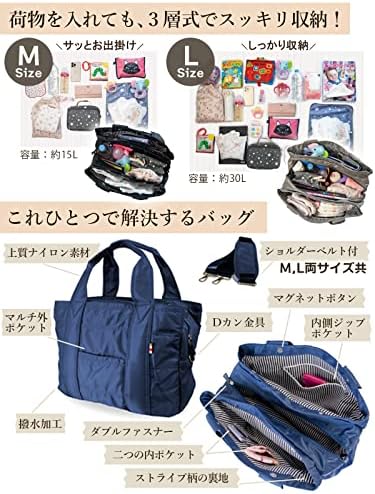 annekor ママのための2wayトートバッグ ショルダーストラップ付き 高品質ナイロン 軽量 大容量 撥水加工 普段使い 旅行 出産祝い 日本製