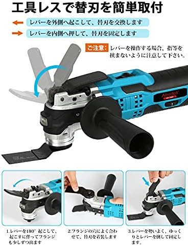 Mrupoo充電式マルチツ電動振動サイクル角度3°HY-7041コードドレス6段段段段段変速型LEDライト電動工具替刃9点セット左右共通ハンドル付マッキタ18 Vバーチカル用多機能電気工具1台多役切断&はく離&研磨&落下とした大工アークセット交換簡単日曜大工DIY初心者向け