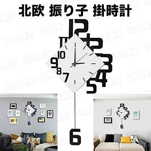 掛時計 振り子 インテリア 北欧 モダン アート 雑貨 おしゃれ 新築 リビング 子供部屋 見やすい (ブラック, M) Medium