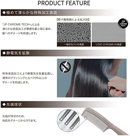 ミネラルを含む特殊加工したプロ向けコーム。カッサ付きで頭皮やお顔のケアにもおすすめ。 【サイズ / 重さ】:W227 x H58 x D8 mm / 約38.0g 【極めてなめらかな表面加工】:日本の工業技術「JP CHROME-TECH」により、滑らかな表面加工が接触摩擦を最小限に留め、髪へのダメージを削減します。さらに、微細な空洞をふさぎ、汚れもつきにくくなっています。 【静電気を拡散】:特殊表面加工により、静電気を吸着し拡散。静電気による髪の広がりを抑え、さらに急な放電による枝毛の発生を抑えます。通常のブラッシングと比べ最大70%以上のダメージを軽減(当社比) 【球状の先端と超軽量】:高い技術により製品化された球状の先端により、地肌をダメージからやさしく守ります。さらに毎日お使いいただく櫛だから、圧倒的な軽量性と強度を実現。 - 55,344位ビューティー ( ) - 293位