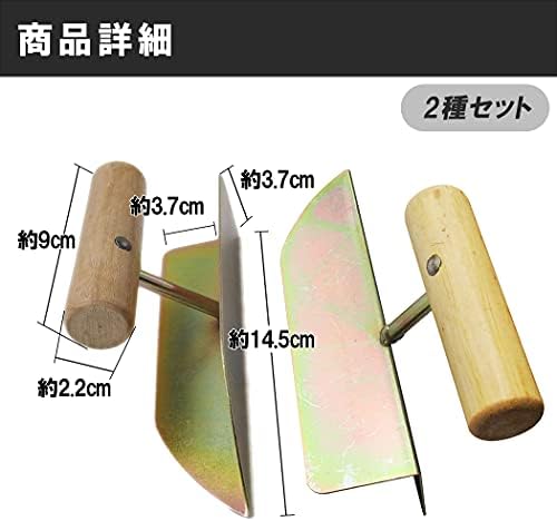 壁のコーナーに漆喰やモルタルを塗るためのコテ:壁のコーナーに漆喰、珪藻土、モルタルなどを塗る際に活用できるコテのセットです。2種セットなので出隅部分と入隅部分の両方の仕上げ作業で使用できます。 木製の持ち手なので握りやすい:こちらのコテの持ち手部分は木製なので、冬でも冷たさを感じにくいです。握りやすい形状となっているので、仕上げ作業もしやすいといえるでしょう。 DIYでリフォームしたい方におすすめ:DIYで自宅の壁を漆喰や珪藻土に塗り替えてリフォームしたい、という方におすすめです。このコテを使えば、仕上がりの完成度がぐっと高まります。 ステンレス製で錆びにくく、耐久性がある:こちらのコテはステンレス製です。プラスチック製のコテに比べて耐久性が高く、鉄製のコテに比べて錆びに強い点が特徴的です。使用した後のメンテナンスも簡単ですので、気軽に使いやすいといえます。 セット内容:2種セット サイズ:幅約14.5cm ※モニターの環境等により、色の見え方に若干差が生じる場合がございます。