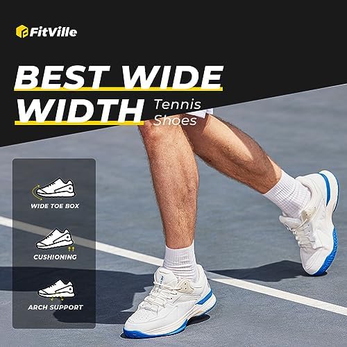 [FitVille] 幅広 テニスシューズ メンズ 2E 4E ワイド オールコート テニス用 運動靴 ハードコート ピックルボールシューズ 軽量 滑り止め 初級者