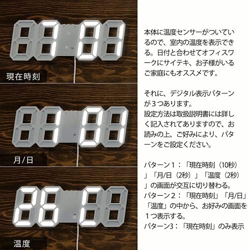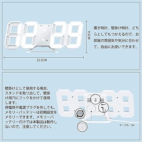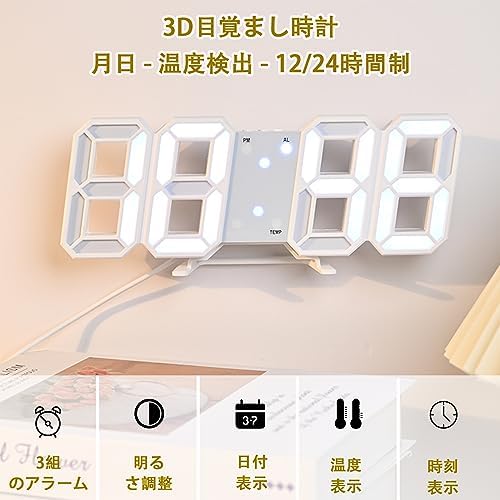 LEDデジタル時計 目覚まし 3D wall clock 置き時計 壁掛け スヌーズ アラーム 明るさ調整 ナイトランプ 年/月/日温度表示 キッチン 日本語取扱説明書付き 2022 アップグレード版 -- オーセンティックストア:FAVOR-VIV (白い, 青色光)