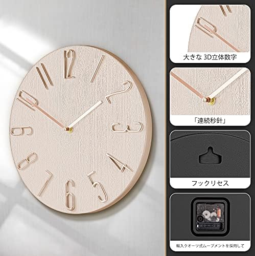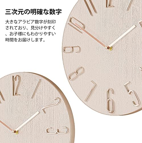 【商品仕様】サイズ:12インチ(約30CM)、本体重量:約390g 、材質:ABS、電池:単三炭素電池(AA)1本使用(付属電池なし) 。 【静音掛け時計】連続秒針タイプとなっており、気になるカチカチ音もありません。静音タイプを採用し、良好な睡眠と仕事環境を創造します。 【おしゃれ デザイン】 シンプルでキュートなデザインで、寝室、居間、オフィスにスタイリッシュな雰囲気をプラス。文字盤には大きな3D数字が刻印されており、視認性が高く、掛け時計の時刻がはっきりとわかります。 【実用性高く】北欧風の静音壁掛け時計、寝室、リビング、図書館、オフィスなど様々な場所に適しており、部屋の装飾としても非常にスタイリッシュで、引っ越したばかりの家族や友達へのプレゼントに最適です。 【質の高いアフターサービス】:ご不満がある場合は、ご連絡ください。問題を解決するために最善を尽くしますので、お気軽にご購入ください。(ヒント):電池の取り付けは、まず電池のプラス側から挿入し、その後、電池のマイナス部分を単純かつ簡単に入れることができるようにする必要があります。 (バッテリーのマイナス側を先に入れてしまうと、装着が非常に困難になります。) 【ヒント】:電池の取り付けは、まず電池のプラス側から挿入し、その後、電池のマイナス部分を単純かつ簡単に入れることができるようにする必要があります。 (バッテリーのマイナス側を先に入れてしまうと、装着が非常に困難になります。)