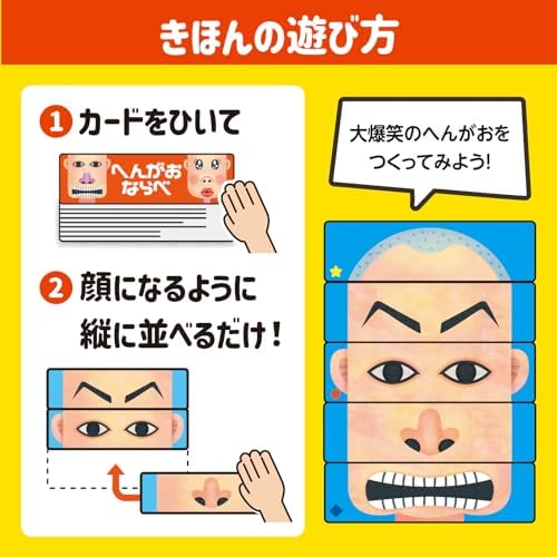 ルールは簡単上下に並べるだけ!大人も子どもも楽しめる! おもしろ顔パーツが大ボリューム90種入り!いろんな変顔をつくって遊ぼう!