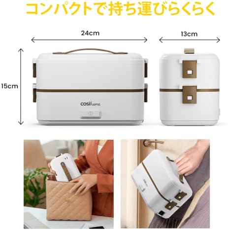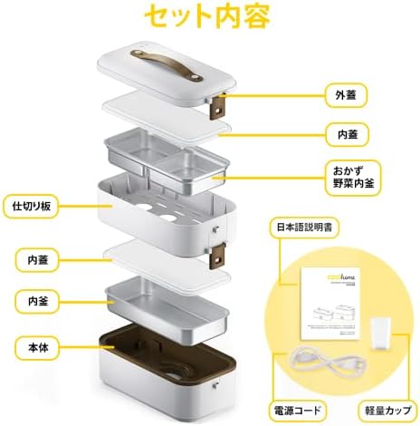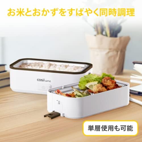 Cosi home 弁当箱炊飯器 最短20分高速炊き 炊飯器 一人暮らし お米おかずを調理 ライスクッカー 空炊き防止機能付き 2段式 ホワイト
