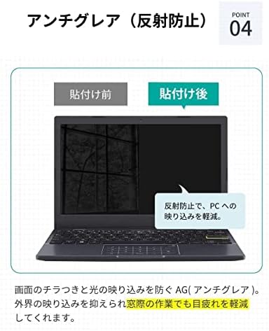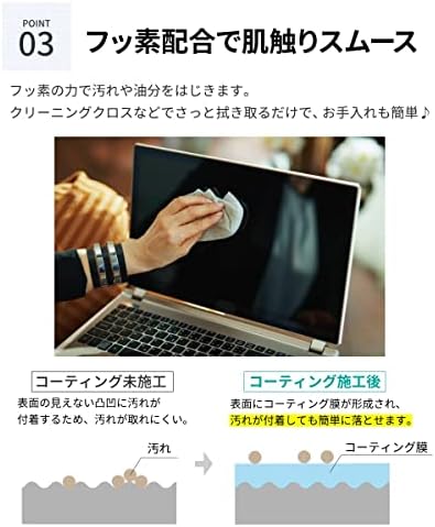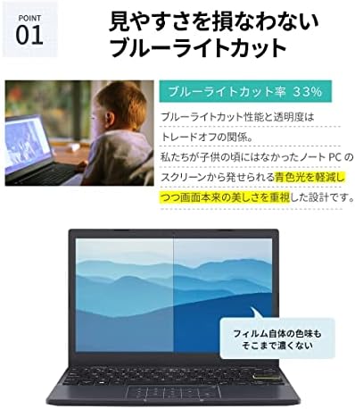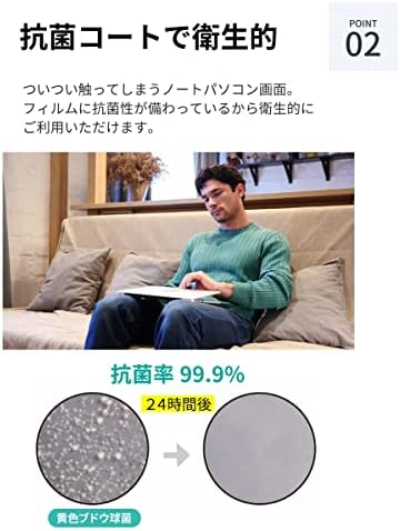 【サイズ】 14" (3:2) 296x198mm 【対象機種】 Panasonic Let's note CF-FV1、MateBook 14 【ブルーライトカット率33%】 見やすさとブルーライトカット性能のバランスに優れたPETフィルムです。 ブルーライトカットフィルムでありがちな、フィルム自体の着色を抑えつつ、高い透過性でディスプレイ本来の見やすさが重視されたフィルムです。 【反射防止】 画面のチラつきと光の映り込みを防ぐAG(アンチグレア)コーティングを施しています。 外界の映り込みを抑えられ窓際の作業でも目疲れ軽減してくれます。 【貼りやすい】 ホコリの混入は大敵です。 大きなサイズのフィルムは特に気泡が入りやすく貼り付け難易度が増す傾向にありますが、本フィルムでは特殊シリコン樹脂を使用しており自然にエアが抜けて液晶画面に気泡が残りにくい(自己吸着・気泡軽減)特性を兼ね備えています。 初めての人でも大きな失敗もなくキレイに貼れるアクセサリーもたくさん付属しています。 【抗菌特性】 黄色ブドウ球菌が24時間で99.9%消滅するといった抗菌性がプラスされています。フッ素コーティングで表面はサラサラ、汚れが付きにくく気になる指紋も簡単に拭き取ることができます。