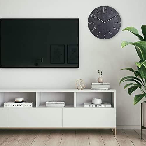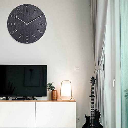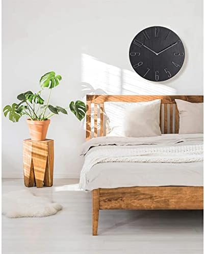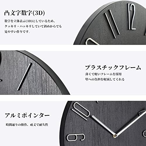 壁掛け時計 おしゃれ アナログ 掛け時計 連続秒針 静音 北欧 時計 壁掛け 木目調ダイヤル 3D大数字 見やすい クロック 自宅 寝室 インテリア 部屋飾り かけ時計 ブラック