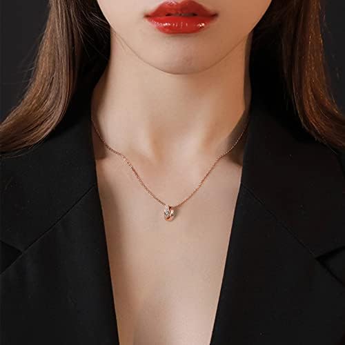 [Pasurohu] ネックレス レディース K18 18金コーティング シルバー925 最高級キュービックジルコニア ペンダント ダブルリング 人気 華奢 ローズゴールド ゴールド プラチナ アジャスター付き 金属アレルギー対応 本物ジュエリー